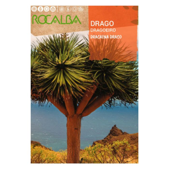 A Rocalba Drago pálma, más néven sárkányfa (Dracaena draco) különleges, nagyon lassú növekedésű, pálmahatású szobanövény. Jellemzője a törzs tetején körkörösen álló, kard alakú levélüstök, és a „sárkányvér” néven ismert vörös nedv, amely sérüléskor megjelenhet. Magról nevelve igazi ritkaság-projekt.