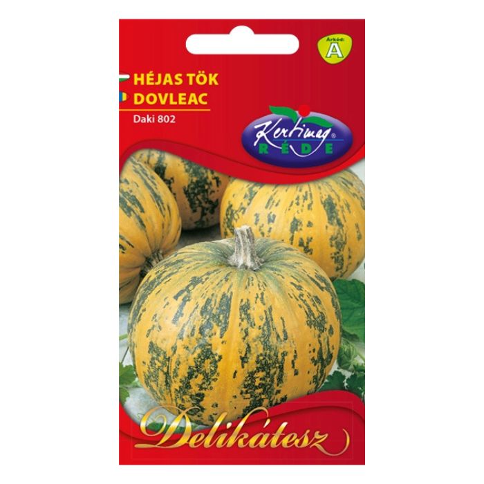 Shelly (Daki 802) héjastök vetőmag (Cucurbita pepo) 6 szem. Héjas magjáért termesztett fajta, 6–7 m indával, lapított gömb alakú, 4–6 kg-os termésekkel, hosszúkás maggal.