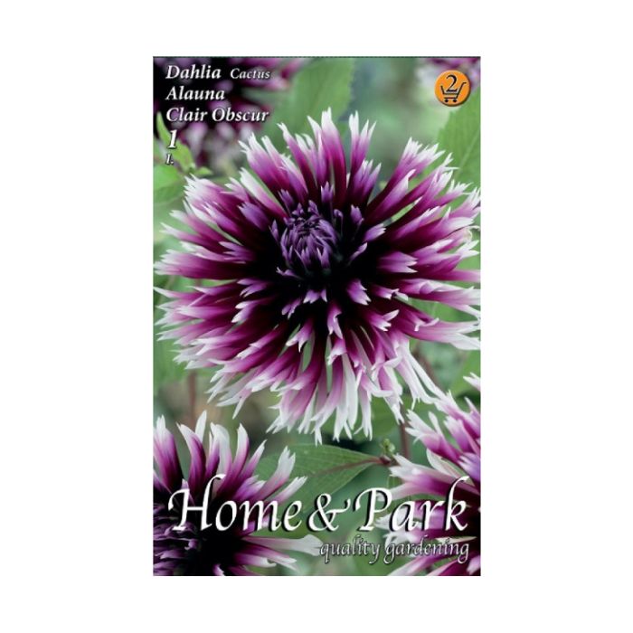 Az Alauna Clair-Obscur kaktuszdália sötét bíbor közepű, fehér szirmú virágai különleges megjelenést biztosítanak. Napos helyet, jó vízelvezetésű talajt és rendszeres öntözést igényel.