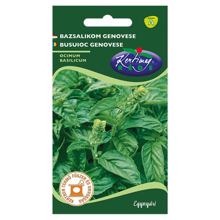 Genovese bazsalikom vetőmag (Ocimum basilicum) az olasz konyha klasszikus fűszernövénye, intenzív aromával és friss, illatos levelekkel. Meleg- és fénykedvelő bazsalikom, amely konyhakertben, magaságyásban, cserépben és balkonládában is jól nevelhető, ezért ideális választás otthoni fűszerkerthez. A bazsalikom levele frissen a legfinomabb: salátákhoz, paradicsomos ételekhez, tésztákhoz, mártásokhoz és házi pesto készítéshez is tökéletes. A dús, bokros növekedésért érdemes rendszeresen visszacsípni, és a szedést virágzás előtt kezdeni. Bazsalikom mag vetésével gyorsan saját, friss fűszert nevelhetsz a konyhához.